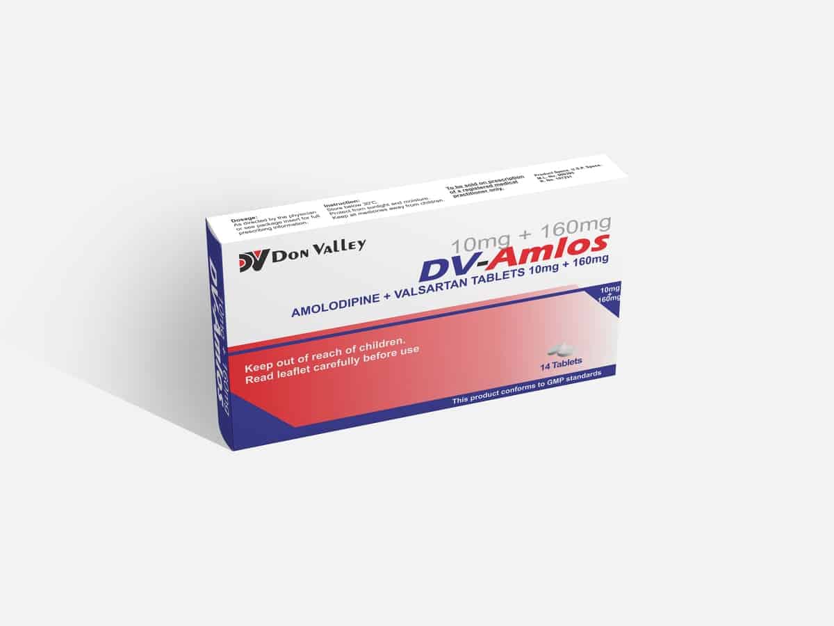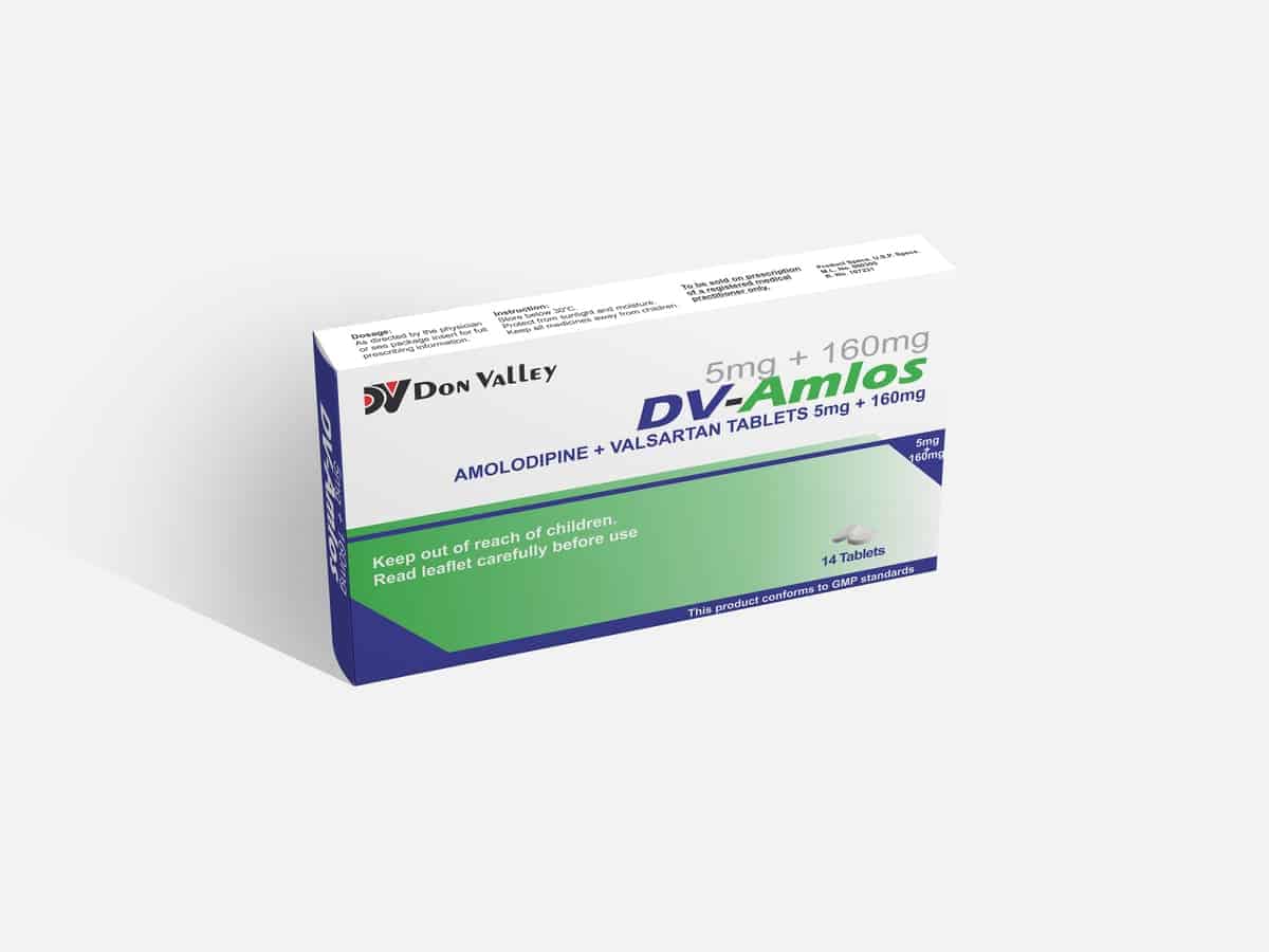 | 27 | DV-Amlos Tablets | Each Tablet contains: Amlodipine besylate eq to Amlodipine…….………..5mg Valsartan……………………………………....……160mg | 14's |