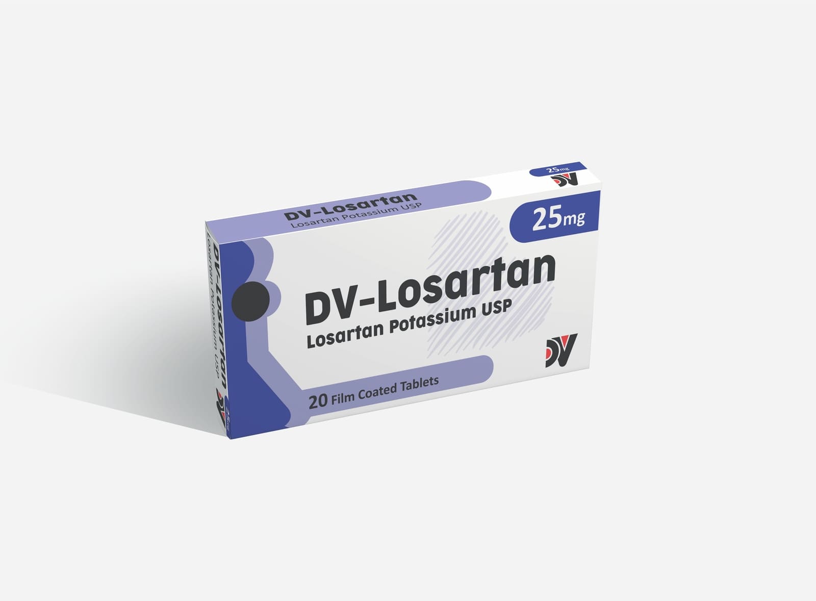 | 14 | DV Losartan Tablets | Each Tablet contains: Losartan Potassium…………………………………25mg | 20's |