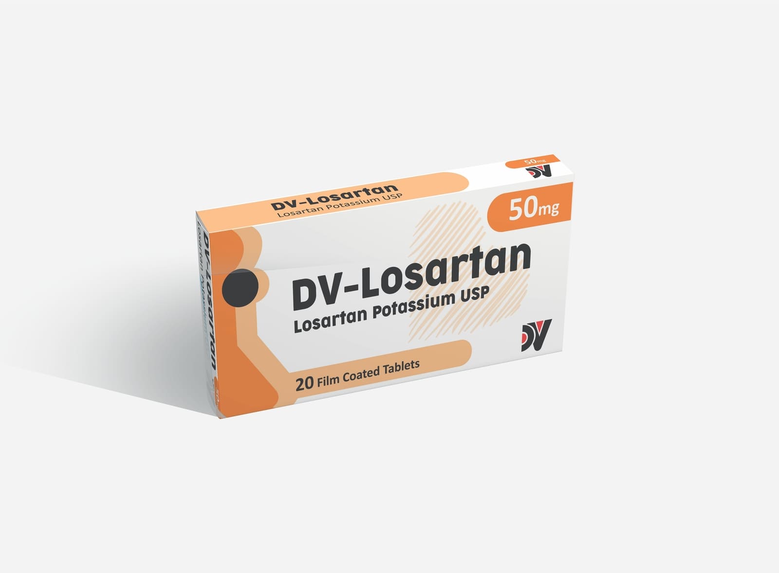 | 15 | DV Losartan Tablets | Each Tablet contains: Losartan Potassium………………………………....50mg | 20's |