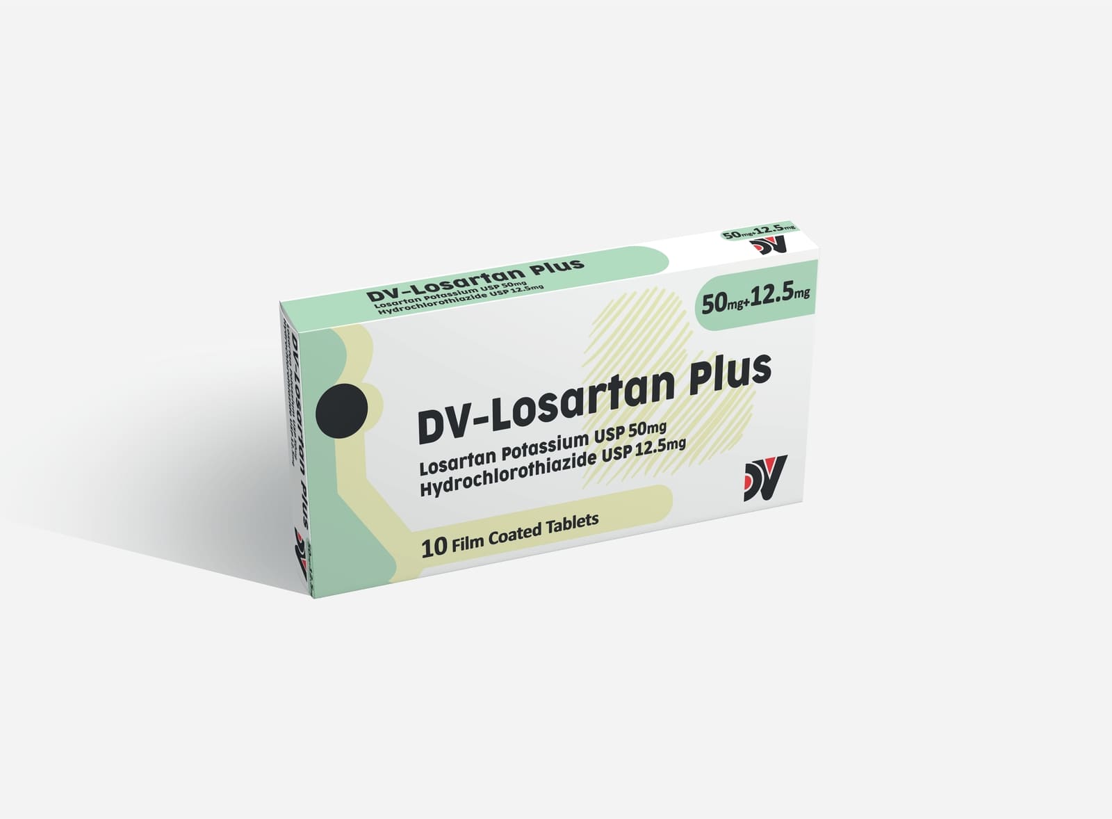 | 17 | DV Losartan Plus Tablets | Each Tablet contains: Losartan Postasium……………………...………….50mg Hydrochlorothiazide………………………...……..12.5mg | 20's |