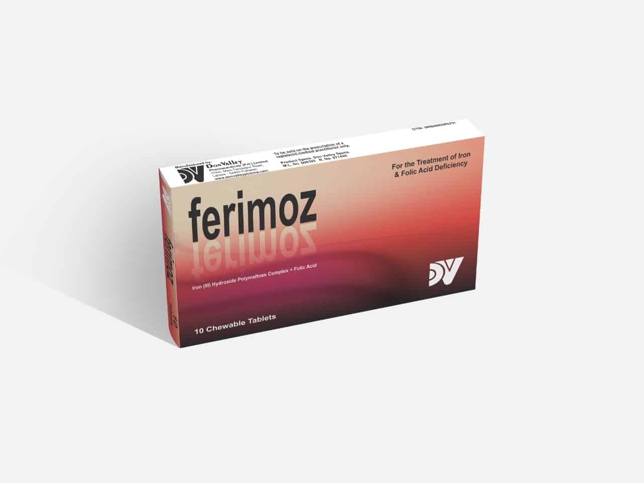 | 1 | Ferimoz Tablets | Each Tablet contains: Iron (III) Hydroxide Polymaltose Complex………....100mg Folic Acid…………………………………………..0.35mg | 10's |
