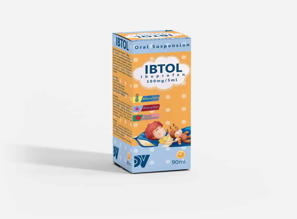 | 4 | Ibtol Suspension | Each 5ml contains: Ibuprofen………………………………………….....100mg | 90ml, 100ml & 120ml |