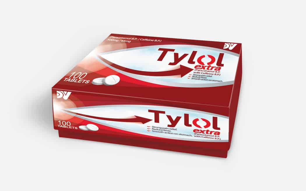 | 9 | Tylol Extra Tablets | Each Tablet contains: Paracetamol…………………………………...……500mg Caffeine……….…………………………………..….65mg | 100's |