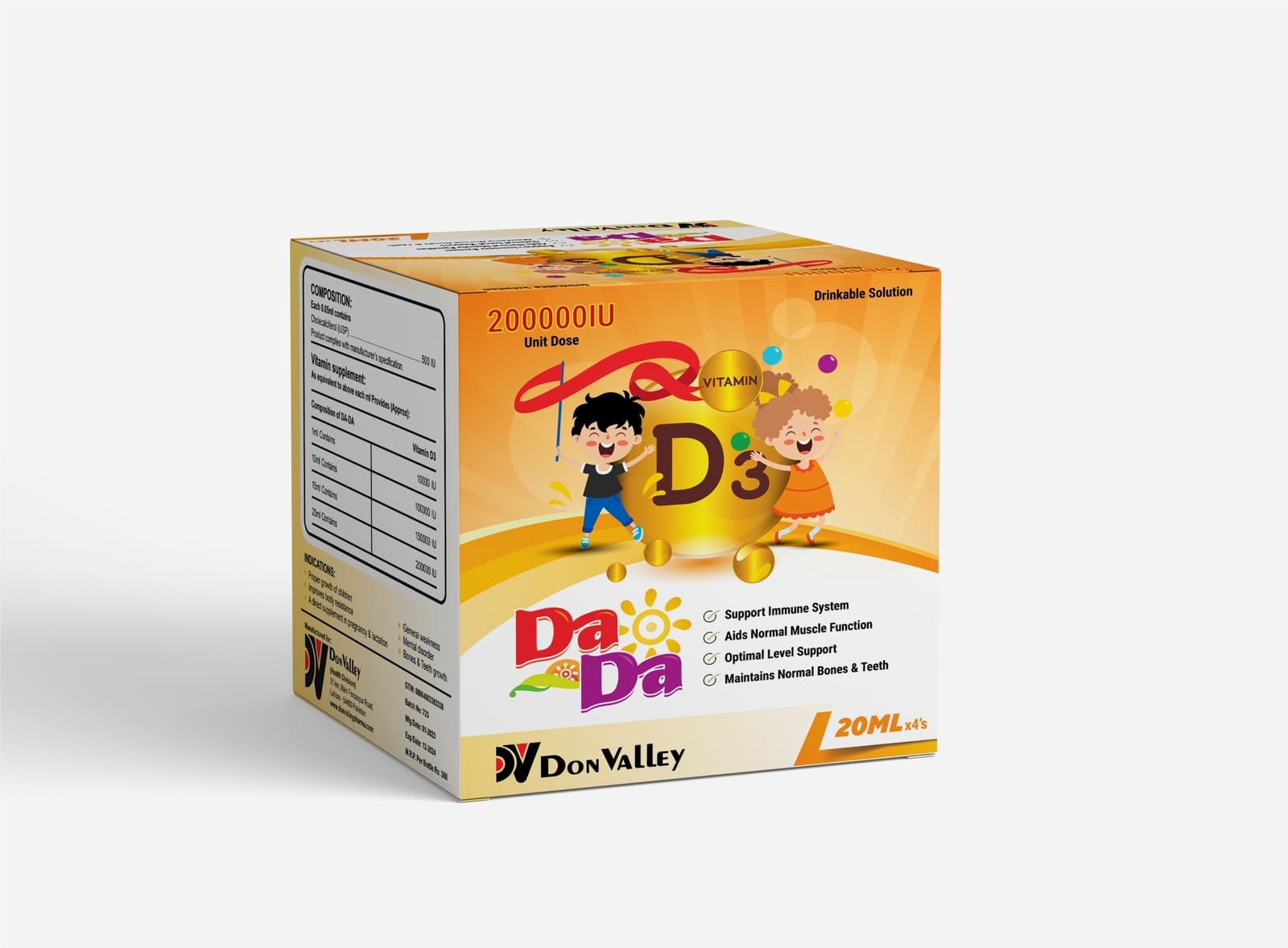 | 24 | Da-Da Drops | Each drop(0.05ml) contains Cholecalciferol (USP)………………………………500IU | 10ml, 15ml, 20ml & 30ml |