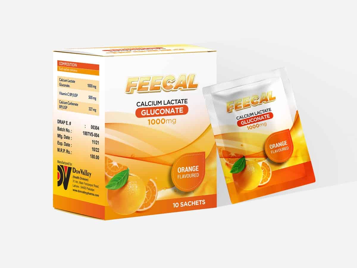 | 3 | Feecal Sachets | Each Sachet contains: Calcium Lactate Gluconate (USP)………………1000mg Vitamin C (USP)……………………………………500mg Calcium Carbonate (USP)………………………...327mg | 10's |