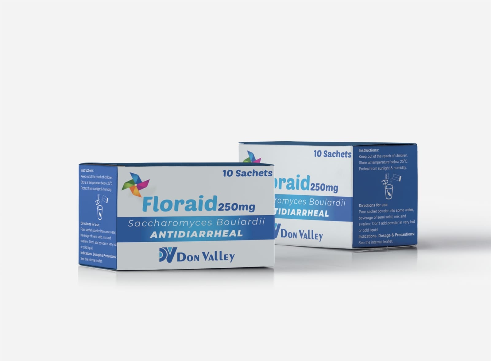 | 10 | FlorAid Sachets | Each Sachet contains: Saccharomyces boulardi (SB)………………...…..250mg | 10's |
