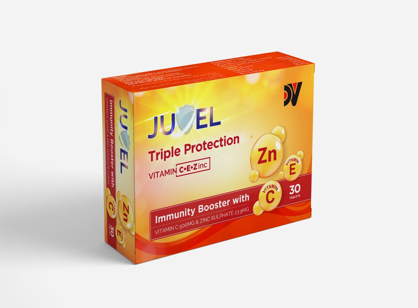 | 2 | Juvel Tablets | Each Tablet contains: Betacarotene…………………………………………..4mg Vitamin E……………………………………………100mg Ascorbic Acid………………………………………500mg Vitamin B6…………………………………………...10mg Vitamin B12……………………………...…………12mcg Zinc Sulphate………………………………………23.9mg | 30's |